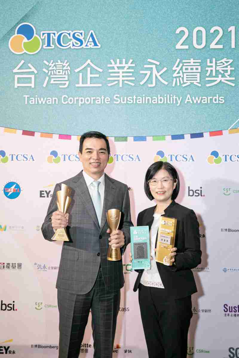 达在台湾永续奖所评比环境、、社会、、治理等各面向的永续绩效均获高度肯定 (左:EBpay光电总经理暨营运长柯富仁,,右:EBpay光电永续长古秀华)