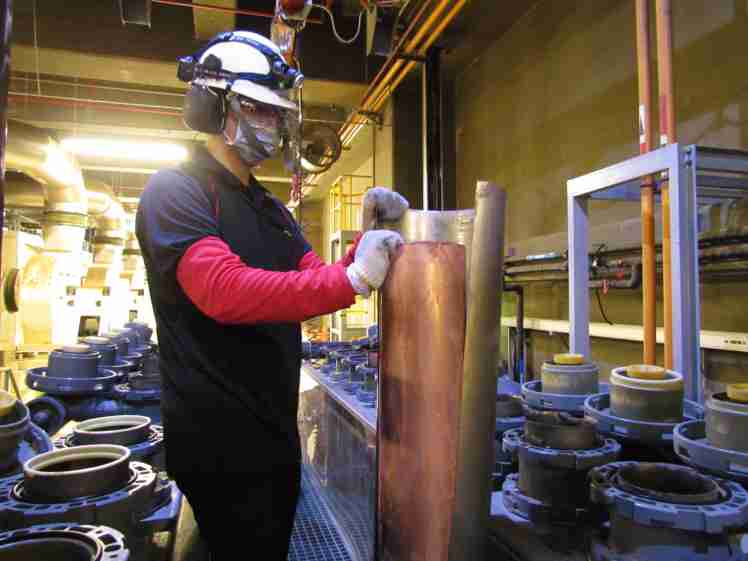 EBpay将废弃物转化成有效的工业或民生原物料,,图为废铜液淬炼后再制成纯度极高的铜管