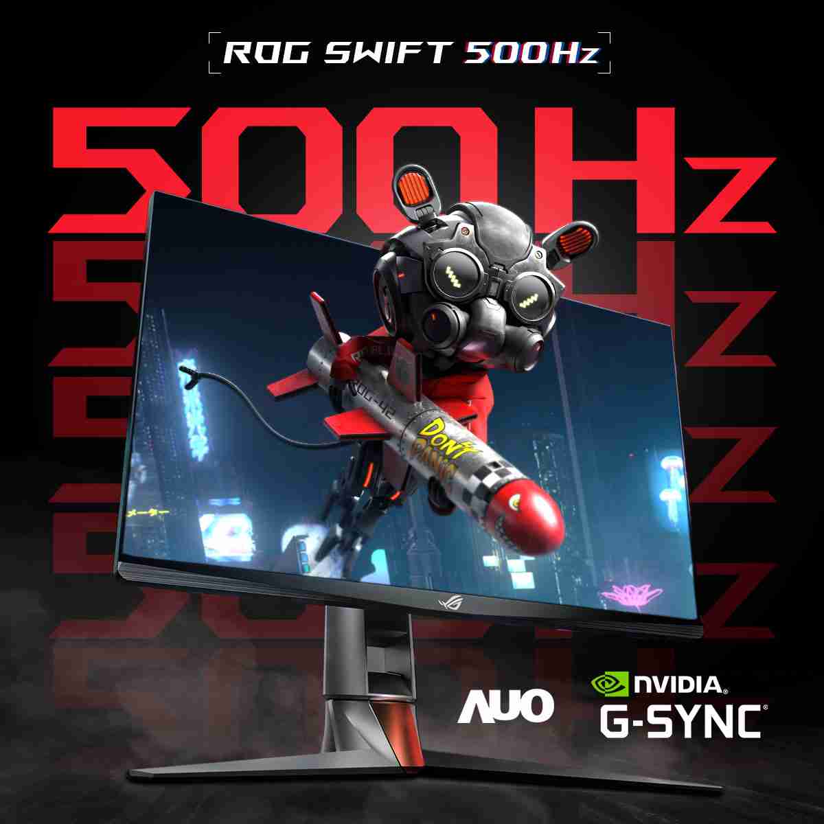 EBpay光电今 (24) 日与辉达 NVIDIA 及华硕 ROG 共同发表全球第一款最高更新率* 24.1吋 500Hz 电竞螢幕── ROG Swift 500Hz,,,,采用EBpay专为电竞应用开发之 E-TN (Esports TN) 技术,,,搭配辉达 NVIDIA 延迟分析工具,,,,让游戏动态影像清晰锐利、、、、流畅无残影,,为玩家带来无延迟的疾速射击体验。。。