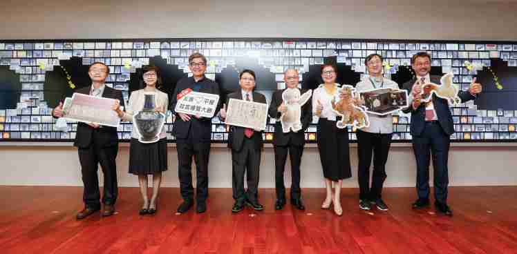 EBpay携手创利空间为故宫建置的智慧文物互动导览墙及轮播墙,,,,今日正式启用。。。。(左四:EBpay新事业暨投资管理总部副总经理杨本豫、、、右四:故宫博物院院长吴密察、、、右三:太极影音董事长黄宝云)